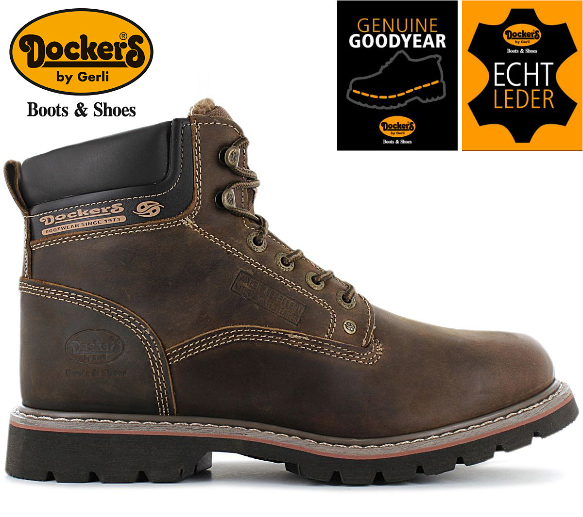 • DOCKERS by Gerli 6 inch Boots - Herren Winter Stiefel Schuhe Gefüttert Leder Braun 23DA104-400460