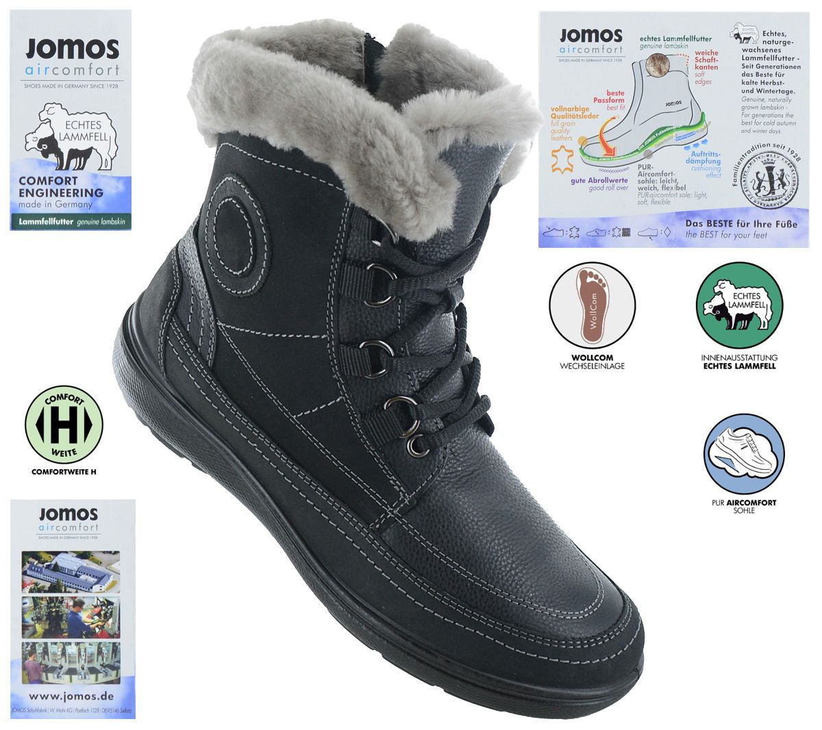 • JOMOS Freewalk Boots - Damen Winter Stiefel mit Lammfell Gefüttert - Leder Schwarz 806501-442-000